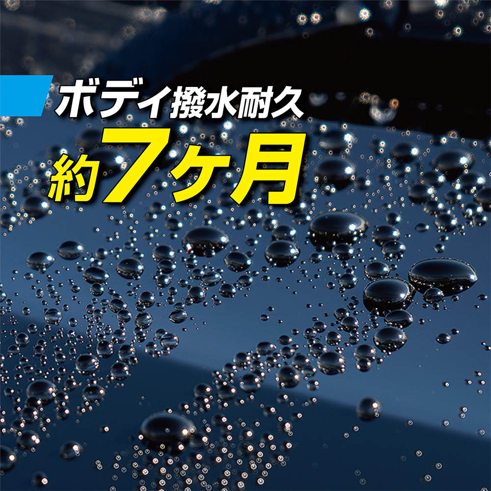 『レインドロップ ゴールドグロス』は、塗装面への使用では約7ヶ月、ガラス面では約3ヶ月の超高耐久効果を発揮します。※メーカーテスト