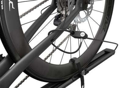自転車の盗難リスクを軽減するロックシステムを提供していますが、自転車の盗難に対する完全な保証にはなりません。自転車の安全性を高めるために、Thuleケーブルロック、Thuleホイールストラップロック(アクセサリーセクションを参照)高品質な市販ケーブルロックの使用をお勧めします |