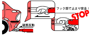 引時の過張力による車のフック部を含め車体の破損を防ぐため、「けん引時のヒューズ」として、設定された張力で確実、