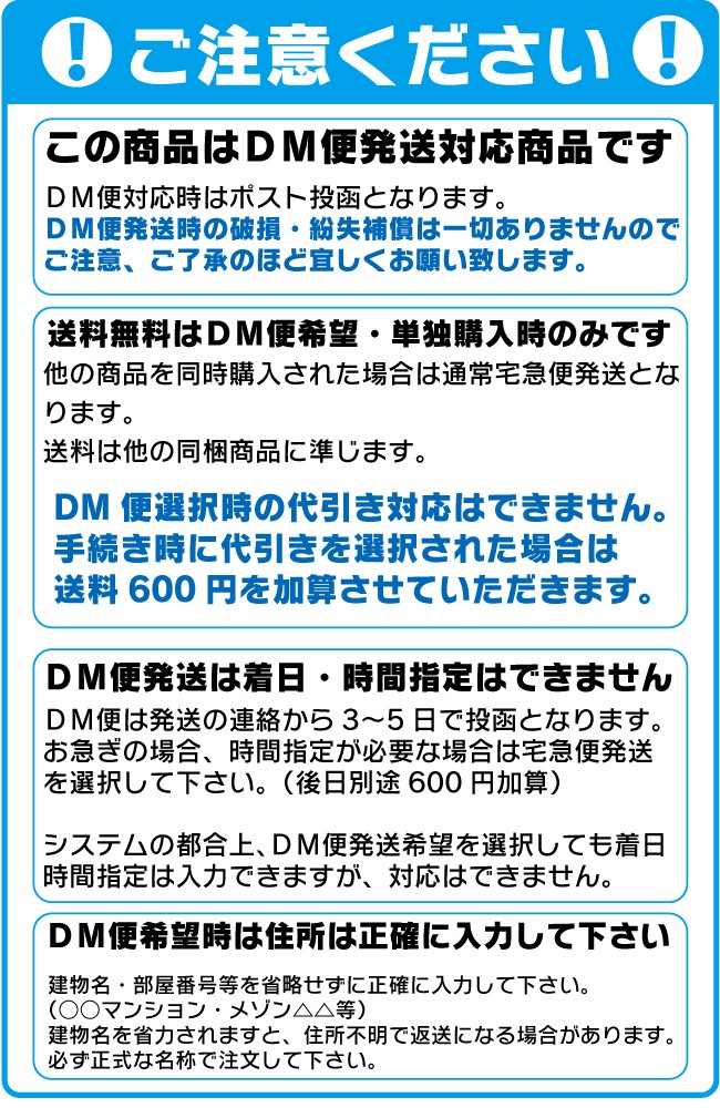 送料無料はDM便選択時のみです。
