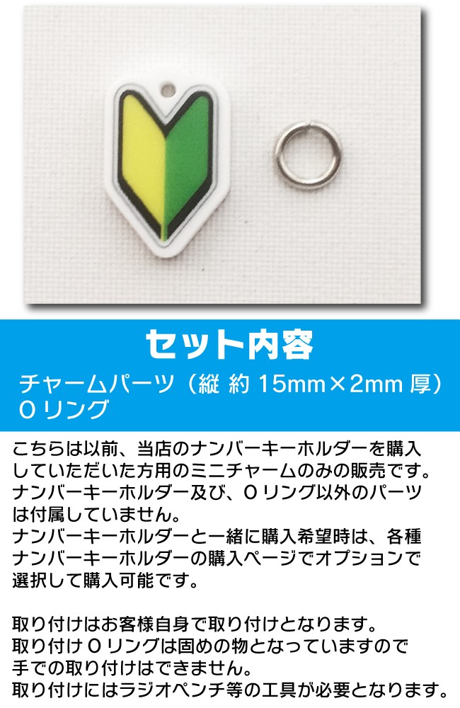 こちらは以前、当店のナンバーキーホルダーを購入していただいた方用のミニチャームのみの販売です。