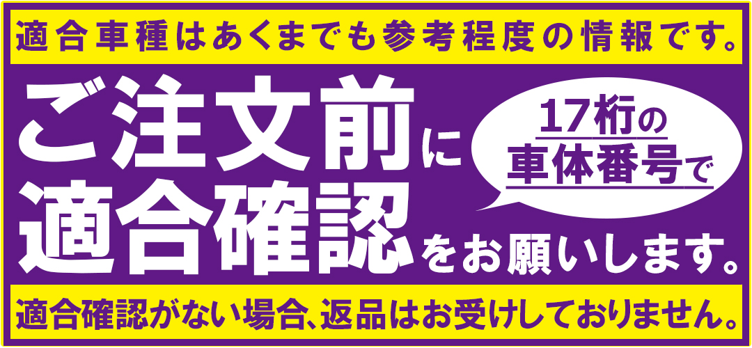 ■適合未確認の場合、適合違いの返品及び交換はお受けできませんのでご注意下さい。