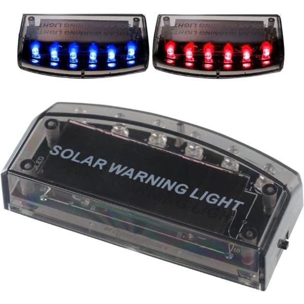 ダミーセキュリティ [ブルー×レッド点滅] 防犯ステッカー付き 6連LED 振動検知センサー内蔵 ソーラー充電+USB充電 盗難対策 LEDスキャナー セキュリティー
