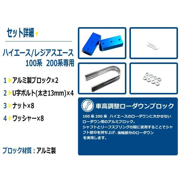 送料無料 車高調整可能 ローダウンブロックキット ハイエース 100系 200系 トヨタ 2個セット 【アルミ製 ローダウンブロック 位置 変更