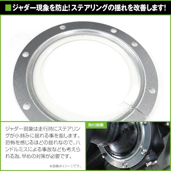 | 【商品説明】 JB系ジムニーの持病、ジャダー現象を解消します。 ジャダー現象は走行時にステアリングが小刻みに揺れる事を指します。 恐怖を感じるほどの揺れなので、ハンドルミスによる事故なども考えられる為、早めの対策が必要です。 約30分ほどの簡単装着です。 ※ハンドルが適度に重くなります。 |