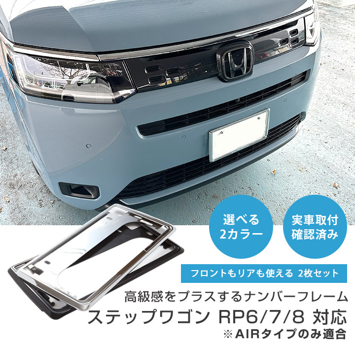 【新基準対応】ステップワゴン RP6/7/8 AIRタイプのみ対応 ナンバーフレーム 2枚セット ナンバー枠 メッキシルバー ブラック フロント リア 一台分