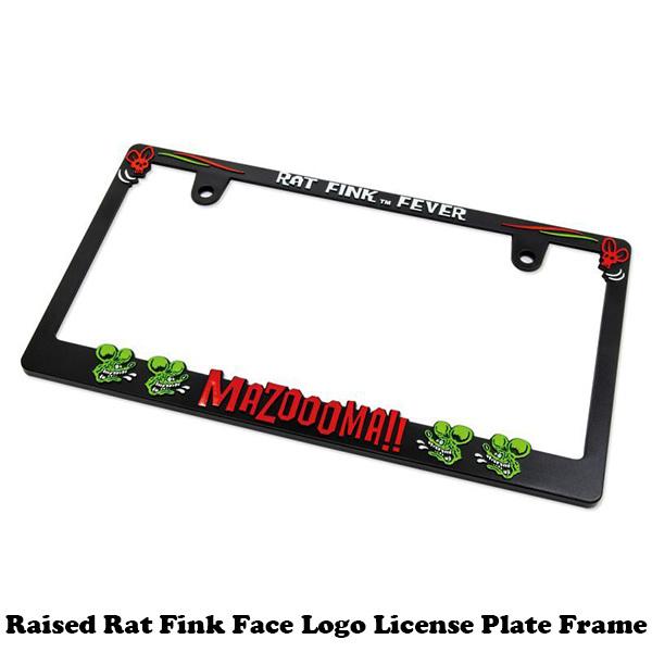 Raised Rat Fink ラットフィンク フェイス ロゴ ライセンス プレート フレーム ブラック ナンバーフレーム 新基準 アメリカ 後つけ 枠 カー用品 アクセサリー