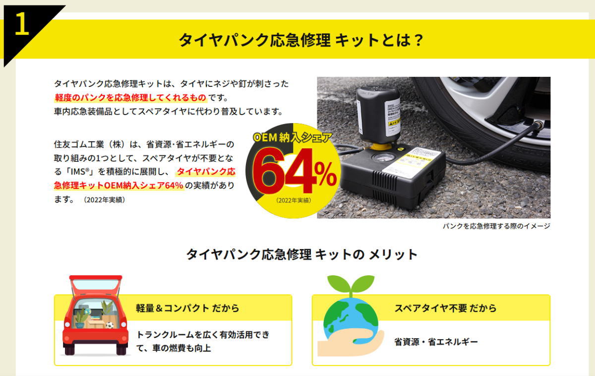 ・自動車専用の応急パンク修理キット