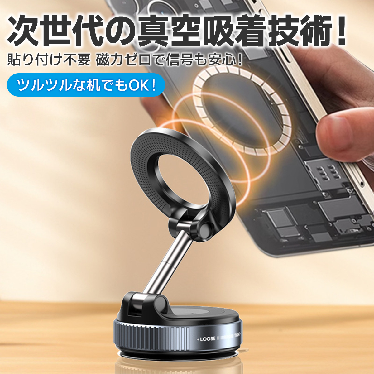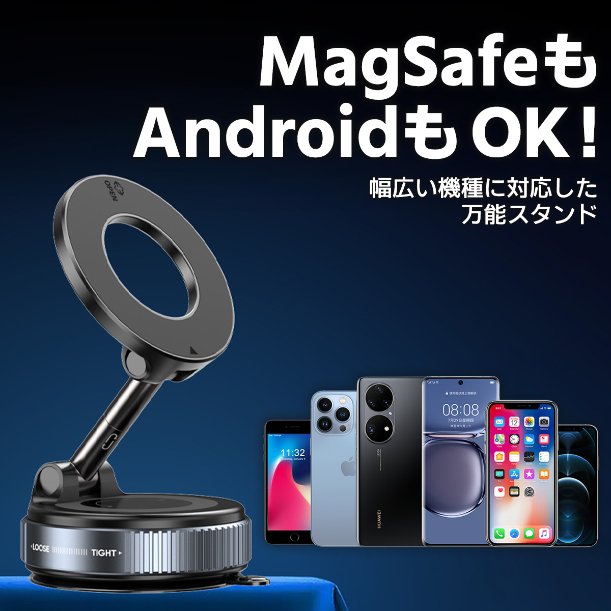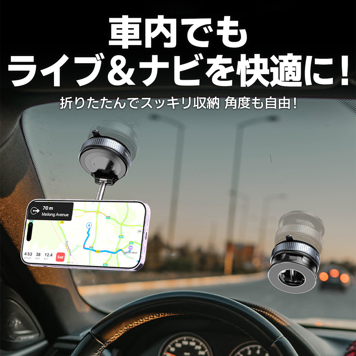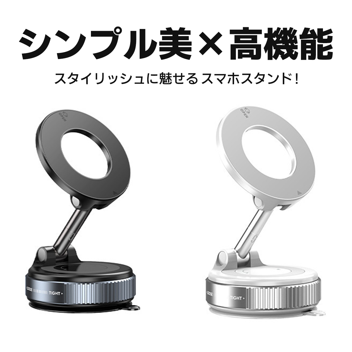 スマホホルダー 車 スマホスタンド 真空吸着式 車載ホルダー magsafe マグセーフ マグネット 吸着 角度調整 片手操作 折りたたみ式
