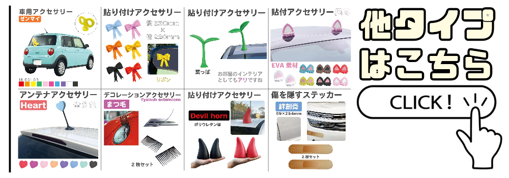 | キーワード | アクセサリー アンテナ オシャレ おしゃれ おもしろ カーアクセサリー カーアンテナ カー用品 カスタム かわいい キッチンカー キャンピングカー シール ステッカー デカール デコ トラック ドレスアップ バイク目印 プレゼント ミニカー ミニバン 強化スポンジ 軽バン 軽自動車 幸運 雑貨 自動車 車 車外 車内 飾り 装飾 目印 目立つ |