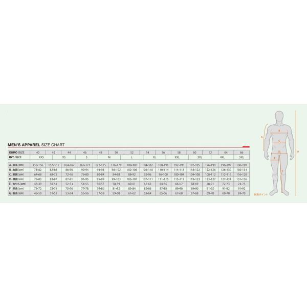 【サイズ目安】身長cm:180-183/胸囲cm:102-106/胴囲cm:88-92/腰囲cm:103-107/脚長cm:83-84