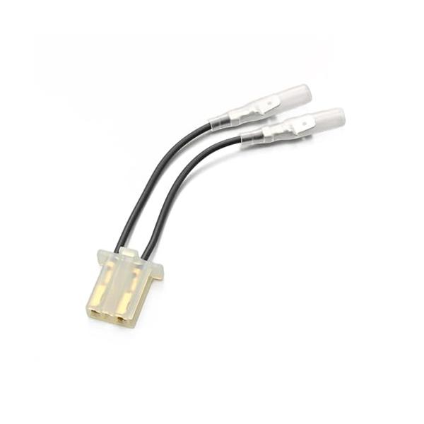 横型クラッチマスターシリンダー用スイッチコネクター。クラッチマスター用スイッチに接続する車体からのハーネスが平端子タイプのものに必要なハーネス。車体側2極平端子をマスター側3極カプラーに変換可能。