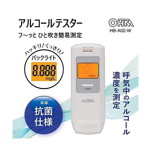 オーム電機 アルコールテスター アルコールチェッカー アルコールセンサー アルコール検知器 呼吸式 HB-A02-W 07-8919 OHM ホワイト