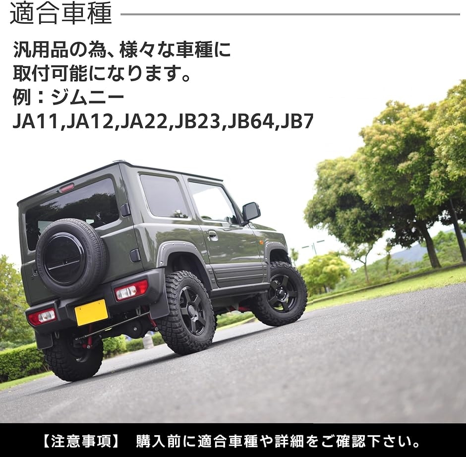 「適合車種」様々なオフロード車、ジムニー,JA11,JA12,JA22,JB23,JB64,JB74,シエラなど。