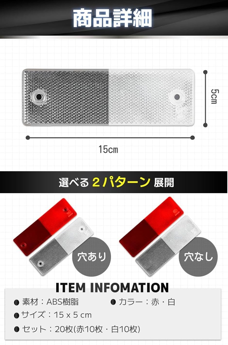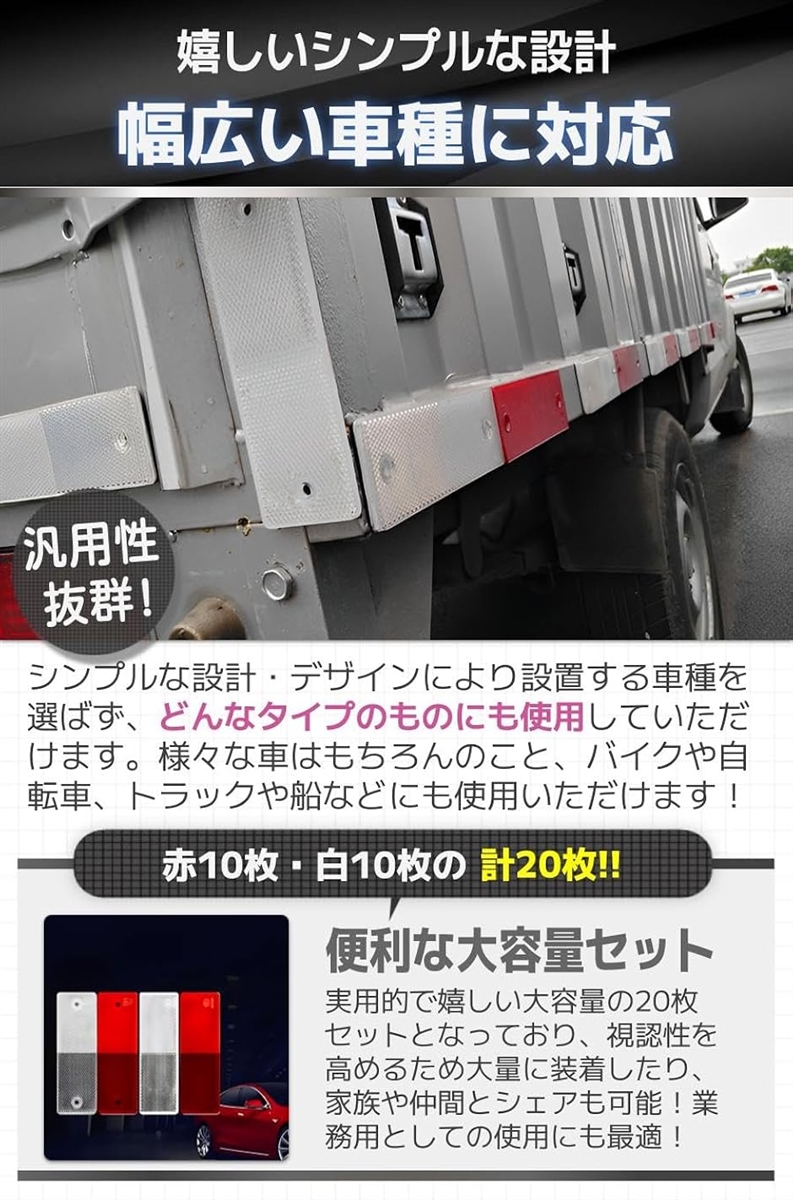 | 商品名 | 互換品 反射板 リフレクター 粘着式 バイク 車 赤10枚 白10枚 20枚セット |