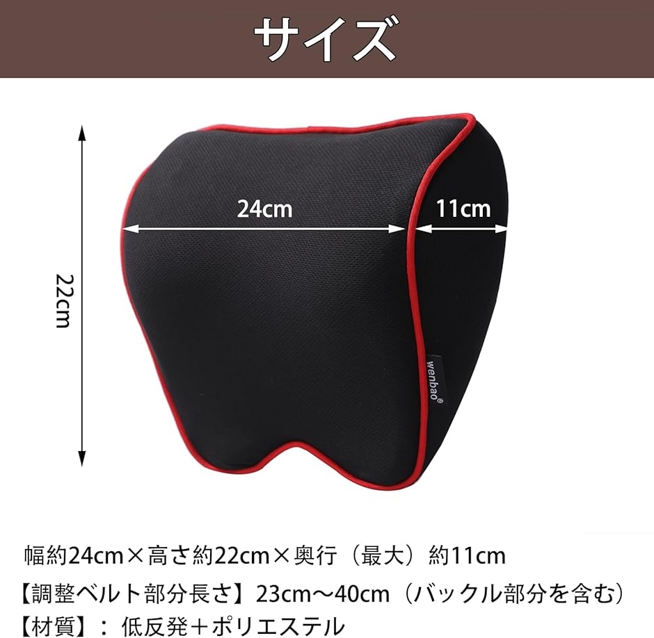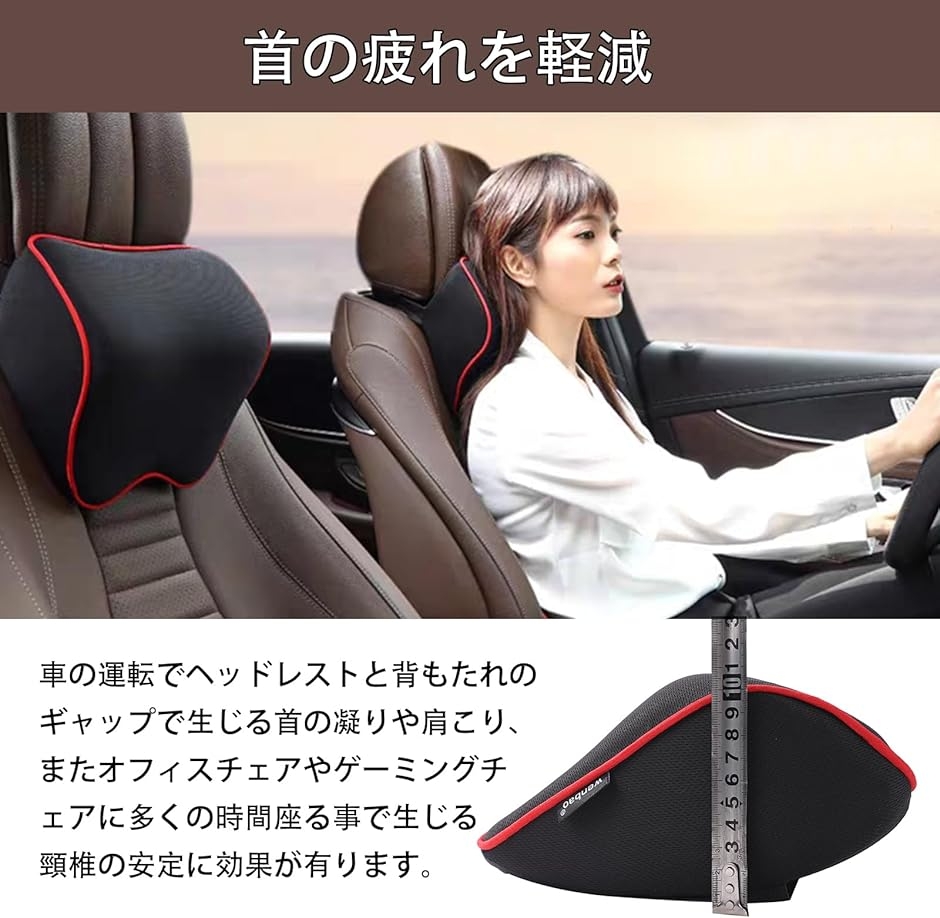 | 商品名 | ヘッドレスト 後付け 車 ネックパッド ネックピロー 腰椎サポート 低反発 ネッククッション ゲーミングチェア 黒x赤 |