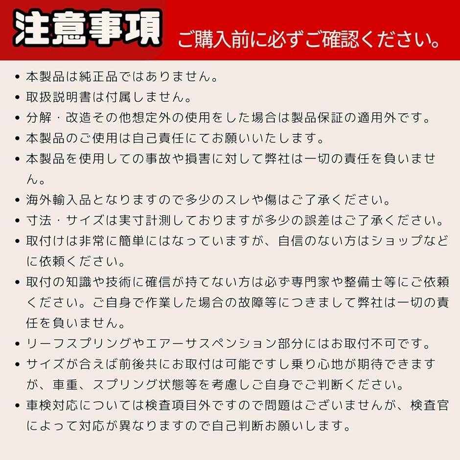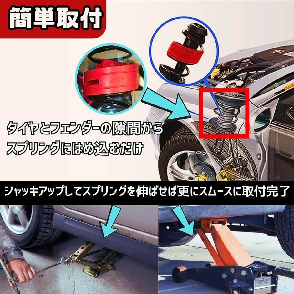 1. ショック吸収&異音解消 ショックアブソーバーで吸収しきれない振動を吸収し、スプリングの線間密着による異音も解消します。
