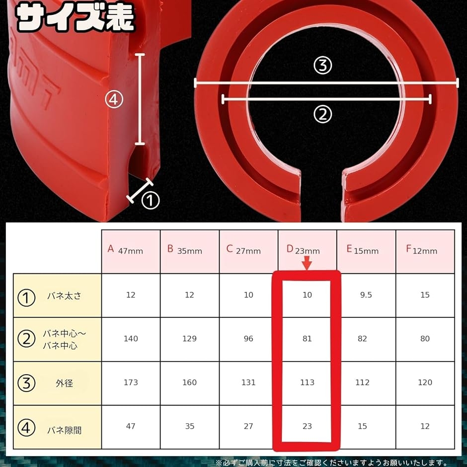 ラバースペーサー スプリングゴム 2個セット サスペンション 車高調整 衝撃吸収 23mm D (23mm (D))