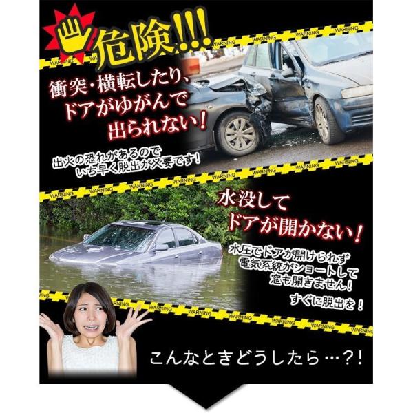 豪雨などの浸水で車やドアが動かず、車内に閉じ込められた時や