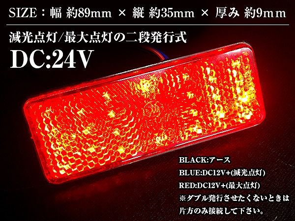 赤 白 橙 汎用 光る LEDリフレクター 反射板 角型 24V 1セット2個入り 左右 サイドマーカー トラック トレーラー けん引