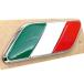 フィアット純正アクセサリーパーツにラインナップされた、500フロントフェンダー用イタリア国旗エンブレムです。樹脂製のクロームフレームベース。そして鮮やかに塗装されたイタリア国旗の3色のパーツが組み合わさった非常に凝った作りは、ステッカーとは異なる質感とボリューム感で、フェンダーを彩ってくれます。