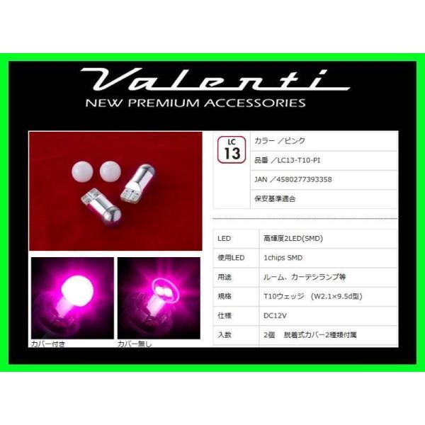 ヴァレンティ ジュエルLEDクロームバルブ T10ウェッジ ピンク (2個入り) LC13-T10-PI