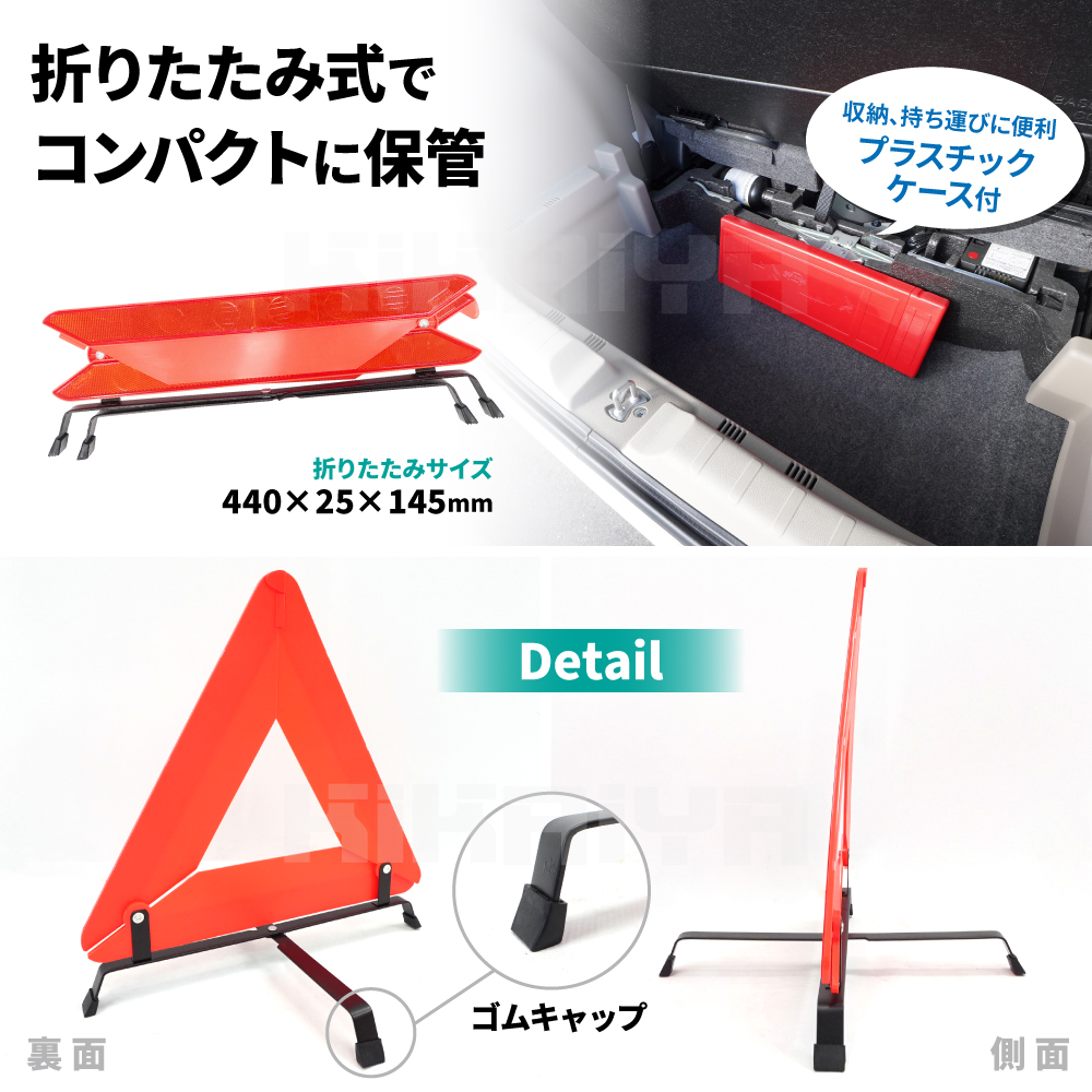 三角停止板 折りたたみ式 2個セット リフレクター 高反射率 反射板 カー用品 停止表示器材 ケース付 高速道路 非常時