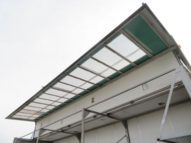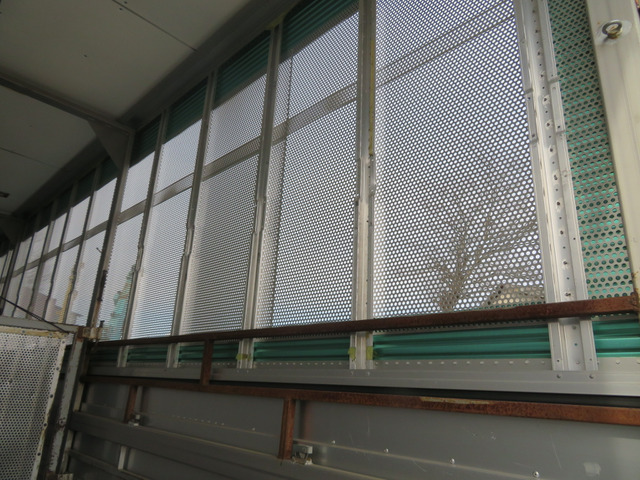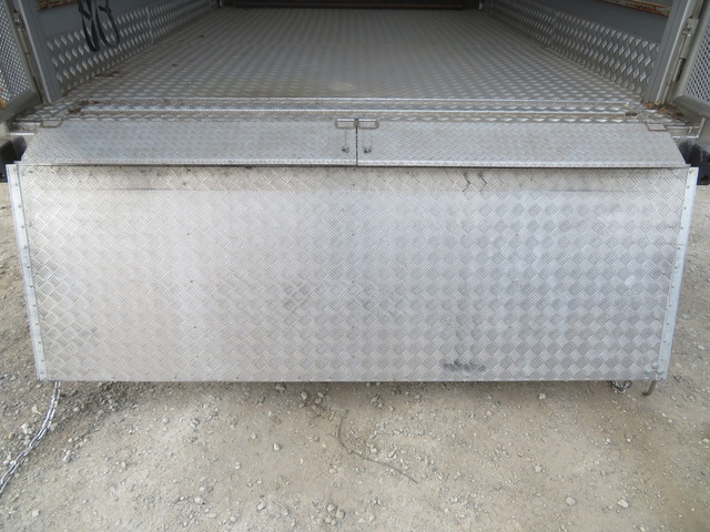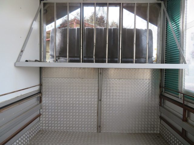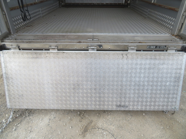☆運転席側ウイングパネルはステンレス製のパンチングメタル取付・約300cmおきに間仕切り稼働柵、四隅には水抜き穴、家畜の固定フックは片側7個の計14個付いています。リヤドアフレーム(門口)と最後部の扉はステンレス製を使用・1番・2番扉の問口(骨格)とパンチメタルはステンレスを使用し扉本体はスチール製・床材はアルミ製の縞鋼板を取付しています。最大積載量は抹消前の数値です。新規車検時は減トンの可能性有ります。