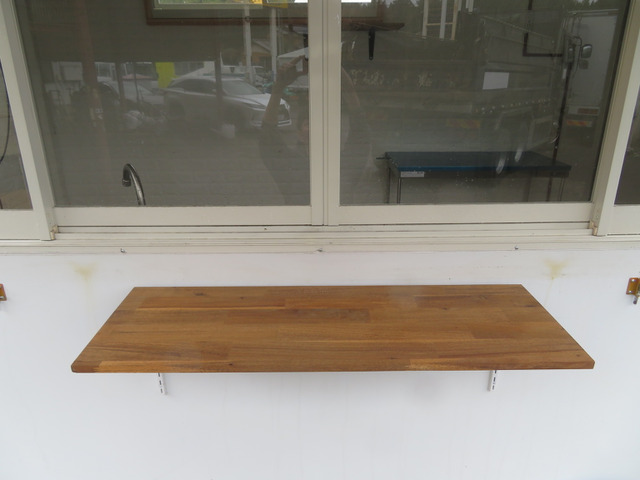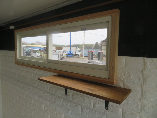 ☆外部サイド扉はダンパー跳ね上げ式です。提供窓下には収納式のカウンターを取り付けることができます。