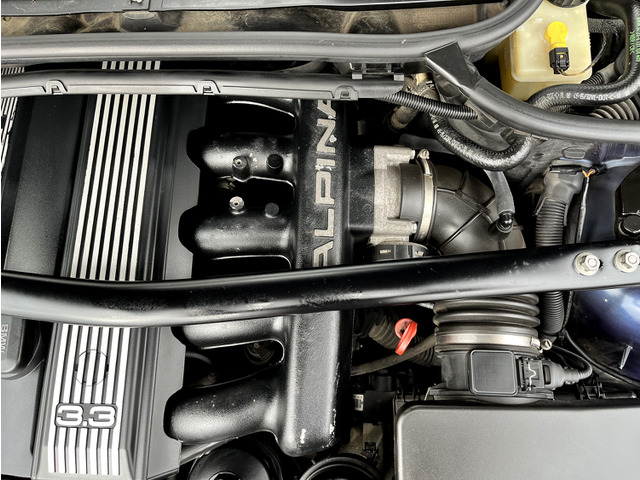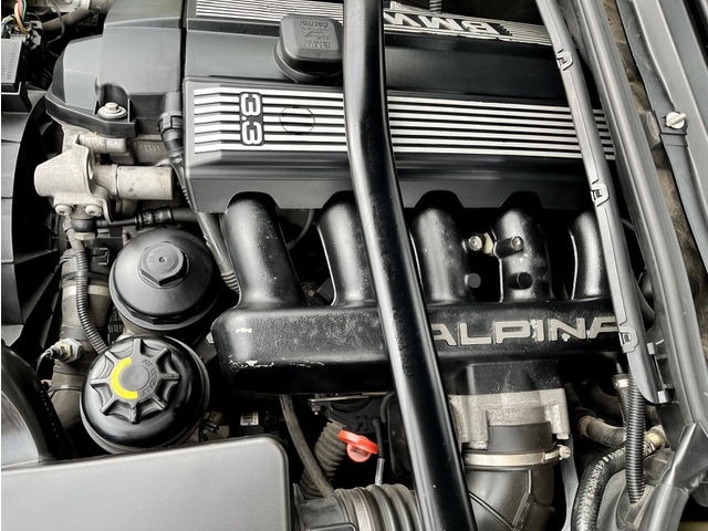ベースとなるのはE46型330i。それをアルピナの手によりベースの3000ccからマーレー製ピストンを使い3300ccへと排気量アップされ、給排気を見直し、231馬力30.6kgから285馬力34.2kgにチューニングされています。 過給器を使わずに50馬力以上のチューニングとは、まさにアルピナマジック。 乗りにくくなるどころか、逆にとても扱いやすい素晴らしいエンジンへと生まれ変わっています。