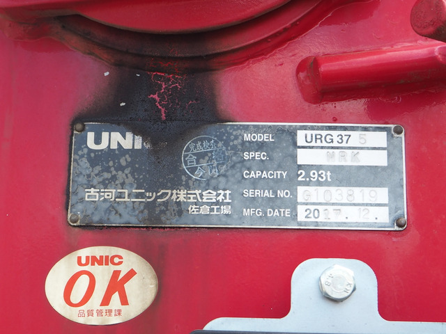 ★上物 古河ユニック製 URG375NRK 5段クレーン 角足 差し違いアウトリガー 2.93t吊 ラジコン付(2017年12月)