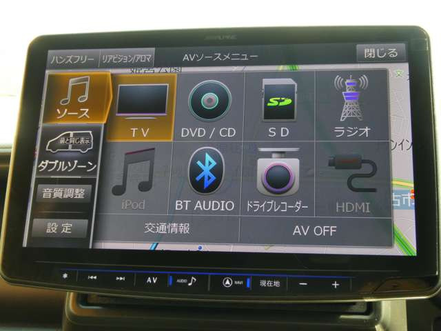 パワーステアリング/パワーウインドウ/ナビ/ETC/エアコン/テレビ(地デジ)/ABS/2エアバッグ/DVDビデオ/横滑り防止装置/バックカメラ/盗難防止装置/キーレス/CD/スマートキー