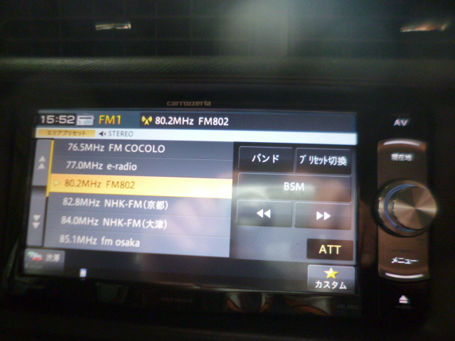 パワーステアリング/パワーウインドウ/ナビ/ETC/エアコン/テレビ(地デジ)/ABS/エアバッグ/DVDビデオ/横滑り防止装置/集中ドアロック/バックカメラ/盗難防止装置/CD/スマートキー/MD