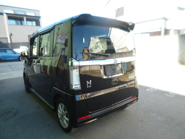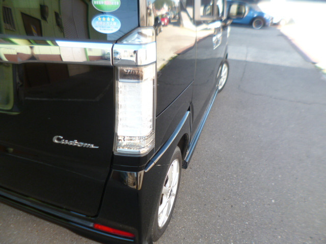 ホンダ N-BOXカスタムをご検討ください!平成27年モデル、走行距離133,900kmのこのブラックカラー軽自動車は修復歴なしで内外装も綺麗です。衝突被害軽減ブレーキや横滑り防止装置など、安全装備が充実。さらに、手数料なしの自社ローンを扱っているので、安心して検討いただけます。人気の黒色がスタイリッシュで、お客様に最適な一台です。