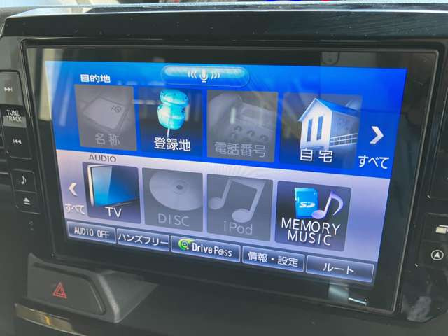 パワーステアリング/パワーウインドウ/ナビ/ETC/エアコン/テレビ(地デジ)/ABS/エアバッグ/DVDビデオ/横滑り防止装置/バックカメラ/盗難防止装置/キーレス/CD/スマートキー