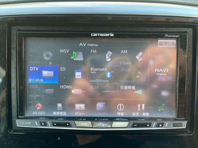 パワーウインドウ/ナビ/ETC/ダブルエアコン/テレビ(地デジ)/ABS/エアバッグ/DVDビデオ/横滑り防止装置/集中ドアロック/バックカメラ/盗難防止装置/キーレス/CD/スマートキー