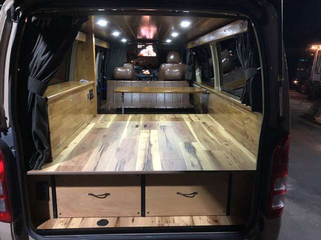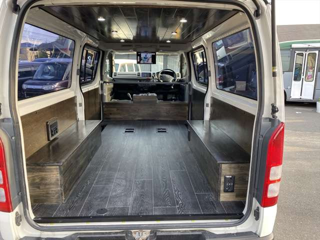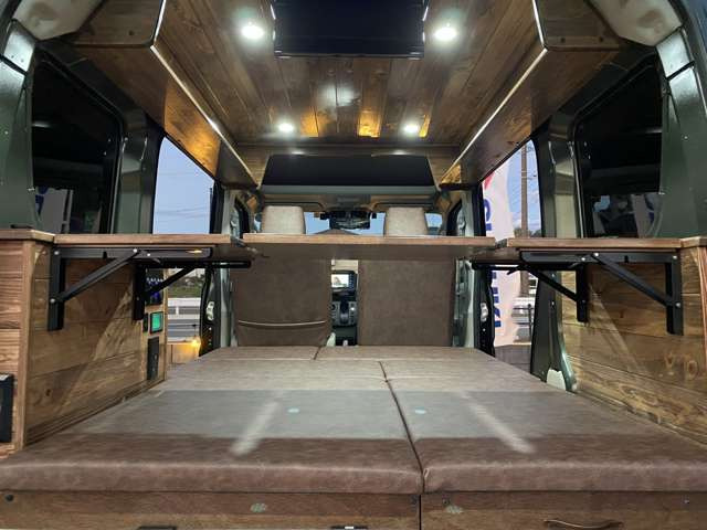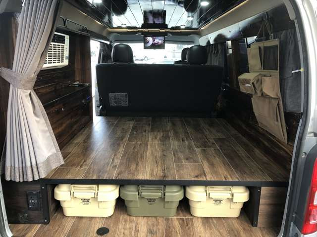 サブバッテリーやポータブル電源仕様車など車中泊カスタムも可能です!最新のカーナビやバックカメラ、ドライブレコーダーなどオプションで取付可能です!