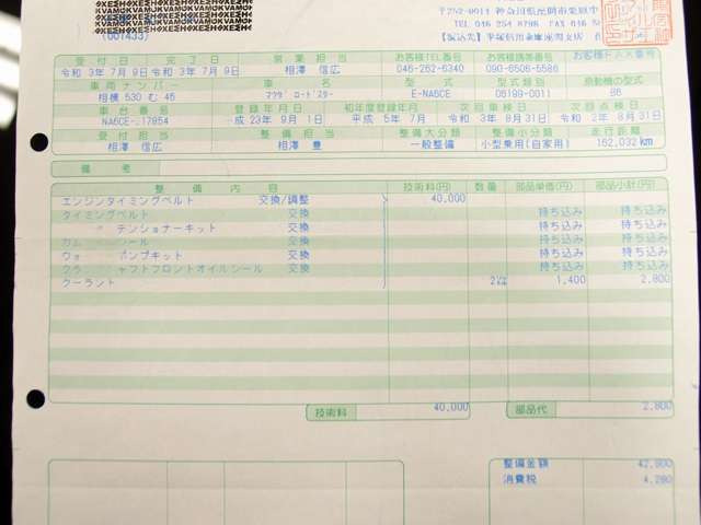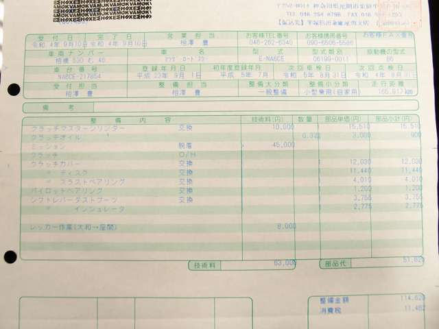 平成5年 ロードスター Sスペシャル 5MT RSアイザワ請求書39枚 記録簿10枚TEIN車高調 RS15AW 茶革 幌張替え クラッチ一式、タイミングベルト一式交換、オルタネーター交換 ETC