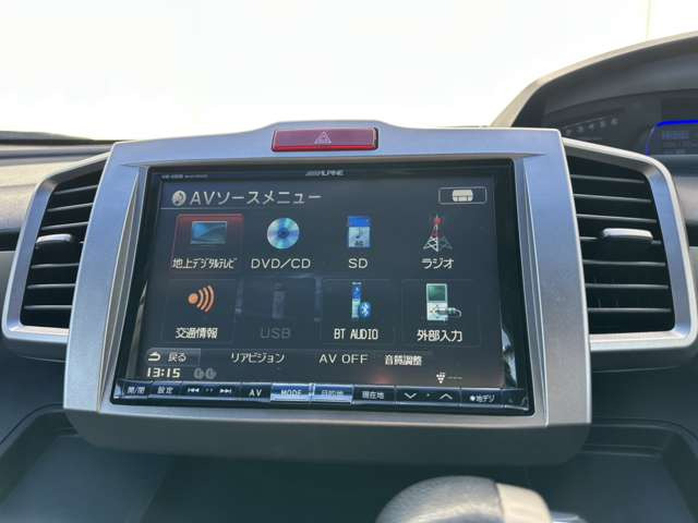 パワーステアリング/パワーウインドウ/ナビ/ETC/エアコン/テレビ(地デジ)/ABS/エアバッグ/DVDビデオ/横滑り防止装置/集中ドアロック/盗難防止装置/キーレス/CD