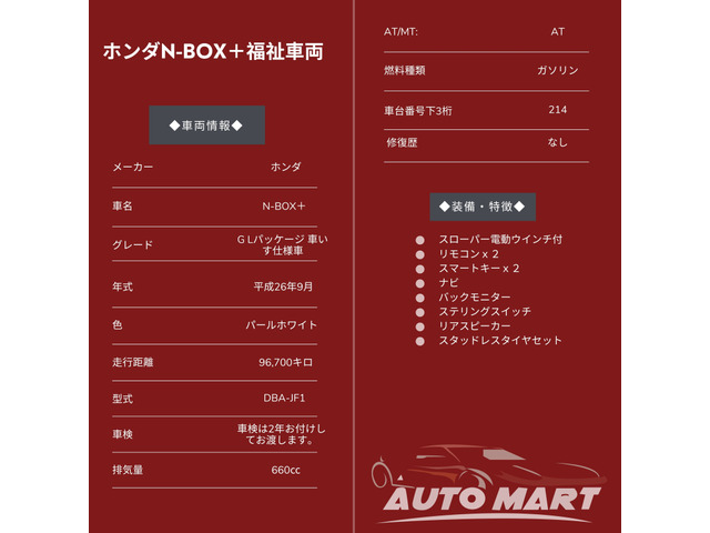 【支払総額525,000円】中古車 ホンダ N-BOX+ 福祉車両スローパー電動ウインチ/リモx2