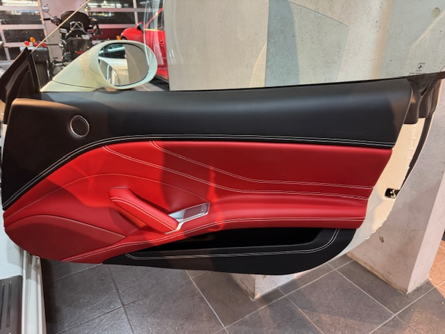外装ビアンコに対し内装がロッソとネロのコンビレザー