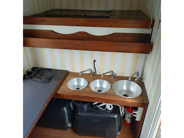 シンク、換気扇、電気設備、給排水タンクが完備されています。