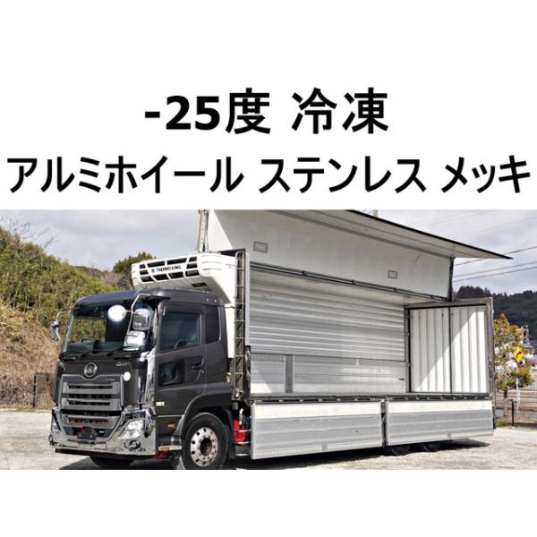 クオン 328番 積載12.5t -25度 低温 冷蔵冷凍 大型 アルミウイングアルミウィング キーレス 左電動格納ミラー 左右電動角度調整ミラー バックカメラ 後輪エアサス ベット 車検証サイズ1199×249高378 荷台内寸945×237高239
