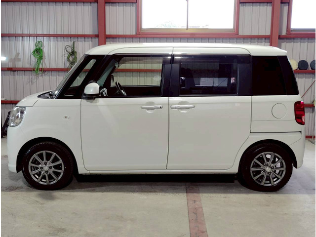 こちらはダイハツ ムーヴキャンバス、平成29年式の軽自動車です。ホワイトボディに走行距離は159,000km。衝突被害軽減ブレーキやABS、横滑り防止装置で安心の装備です。純正ナビとバックカメラで快適な運転をサポート。アイドリングストップと盗難防止装置も備え、安全性もしっかり。修復歴がなく、使い勝手の良い一台です。この機会にぜひ、ドライブのパートナーにいかがでしょうか。