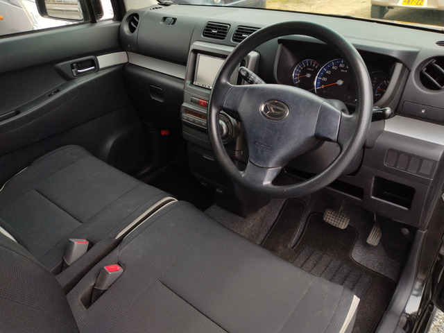 ダイハツ ムーヴコンテ カスタムのご案内です?平成23年式で走行距離は212,000kmと多走行ですが、修復歴もなく、定期的なオイル類の交換や予備的なメンテナンスも行き届いており安心して乗車いただけます。ブラックのボディカラーが落ち着いた印象を与えます。ABSや盗難防止装置付きで安心安全!スマートキーとナビが装備されており、便利な機能が充実しています。車検も令和8年11月まで付いており、内外装の状態も良好に保たれています。通勤やお買い物などの普段使いにお値打ちな一台はいかがですか。