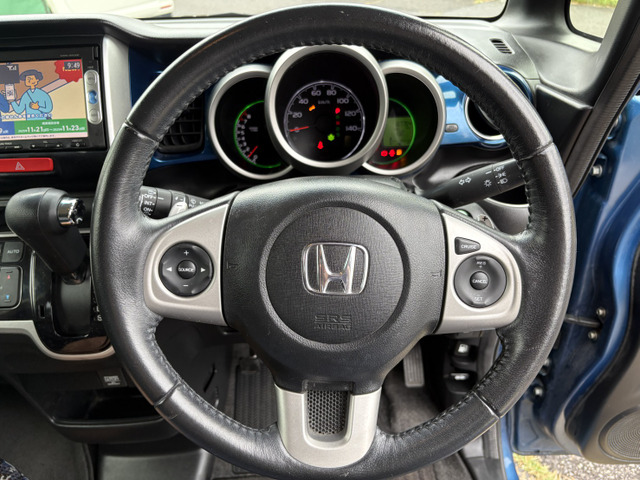 ホンダ N-BOX 平成26年式のブルーの軽自動車、いかがでしょうか?走行距離は170,000kmですが、しっかりメンテナンスされており修復歴なしで安心です。充実した装備にはABS、バックカメラ、トラクションコントロール、横滑り防止、アイドリングストップに加え、盗難防止装置とETCも含まれています。2トーンカラーデザイン、加えてパドルシフト、ターボと4WDが快適な走行を実現します。ぜひその魅力を肌で感じてみてください!