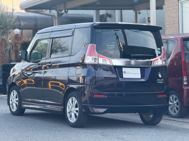 こんにちは!元気いっぱいなスズキ ソリオのご紹介です!平成30年式のこのソリオ、コンパクトなのに中はとっても広々で、長距離でも快適ですよ!走行距離は125,504kmですが、ボディはミッドナイトバイオレットメタリックとシックなカラーで、おしゃれ度満点です!