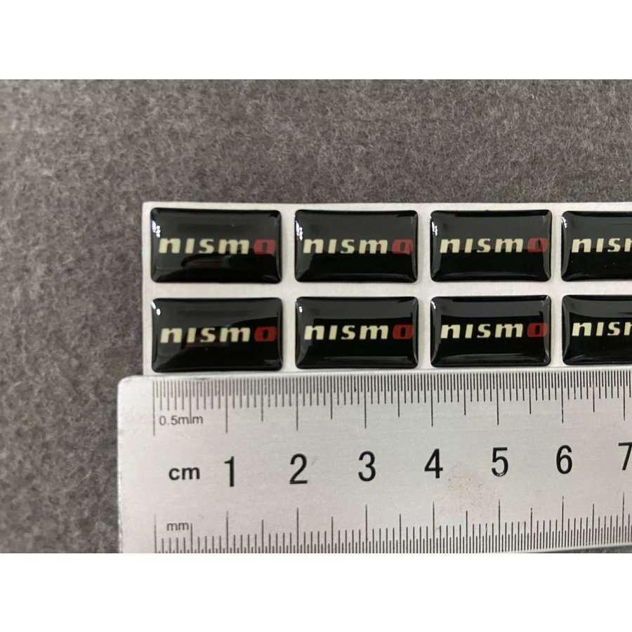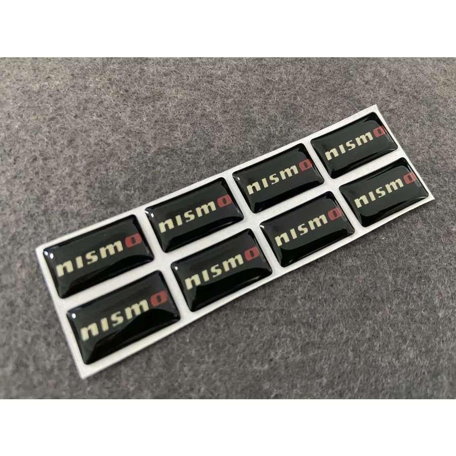 送料無料 12★nismo NISSAN 日産 ニッサン用★8枚セット カーステッカー エンブレム シール ブラック プレート 硬質透明プラスチック 強粘着力 18x10MM