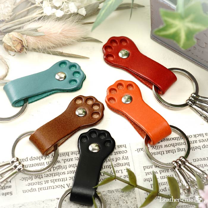 猫 かわいい キーホルダー 牛本革 肉球 革 レザー 小物 バッグチャーム バレンタイン ホワイトデー ギフト 記念日 レディース おしゃれ シンプル プレゼント