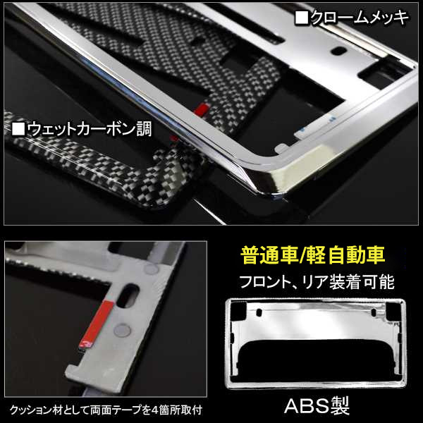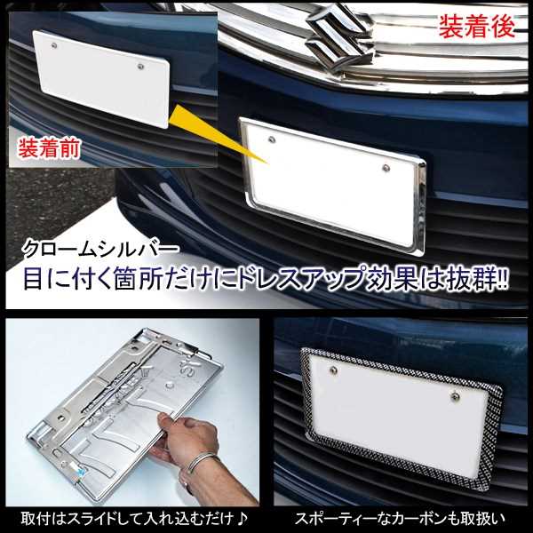 スペーシア スペーシアカスタム MK54S MK94S ナンバーフレーム ナンバープレート 汎用 メッキ カーボン 2枚 車 フロント リア 新基準 カスタム 外装 パーツ